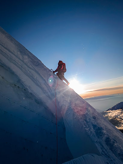 Una excursión de un día a la escalada en hielo en el glaciar Llaca o Contrahierbas es imprescindible si no has probado la escalada en hielo antes. Escalar paredes verticales de hielo en un glaciar es diferente a nada, y solo estar en el cañón de Llaca rodeado de hermosas vistas de la montaña es una experiencia inolvidable. No se necesita experiencia previa en escalada en hielo; Nuestros instructores oficiales te contarán todo lo que necesitas saber para tener una gran escalada. La aclimatación previa sería una ventaja para este viaje, pero no es esencial. El tiempo que pases en Llaca te ayudará a aclimatarte a altitudes más altas.