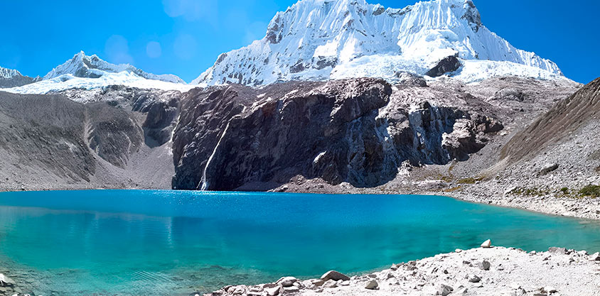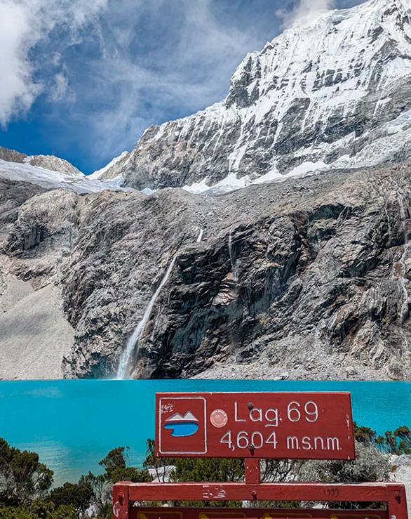 Conoce una de las lagunas turquesas más hermosas de la cordillera blanca de formación natural en la base del glaciar Chacraraju (6100 msnm) y Pisco (5757 msnm), en la quebrada de llanganuco. El recorrido es moderado - difícil debido a su altitud 4650 msnm con un recorrido de 3 horas de caminata hacía la laguna 69, en el camino podrás observar montañas como Huascarán, Yanapaccha y Chopicalqui.