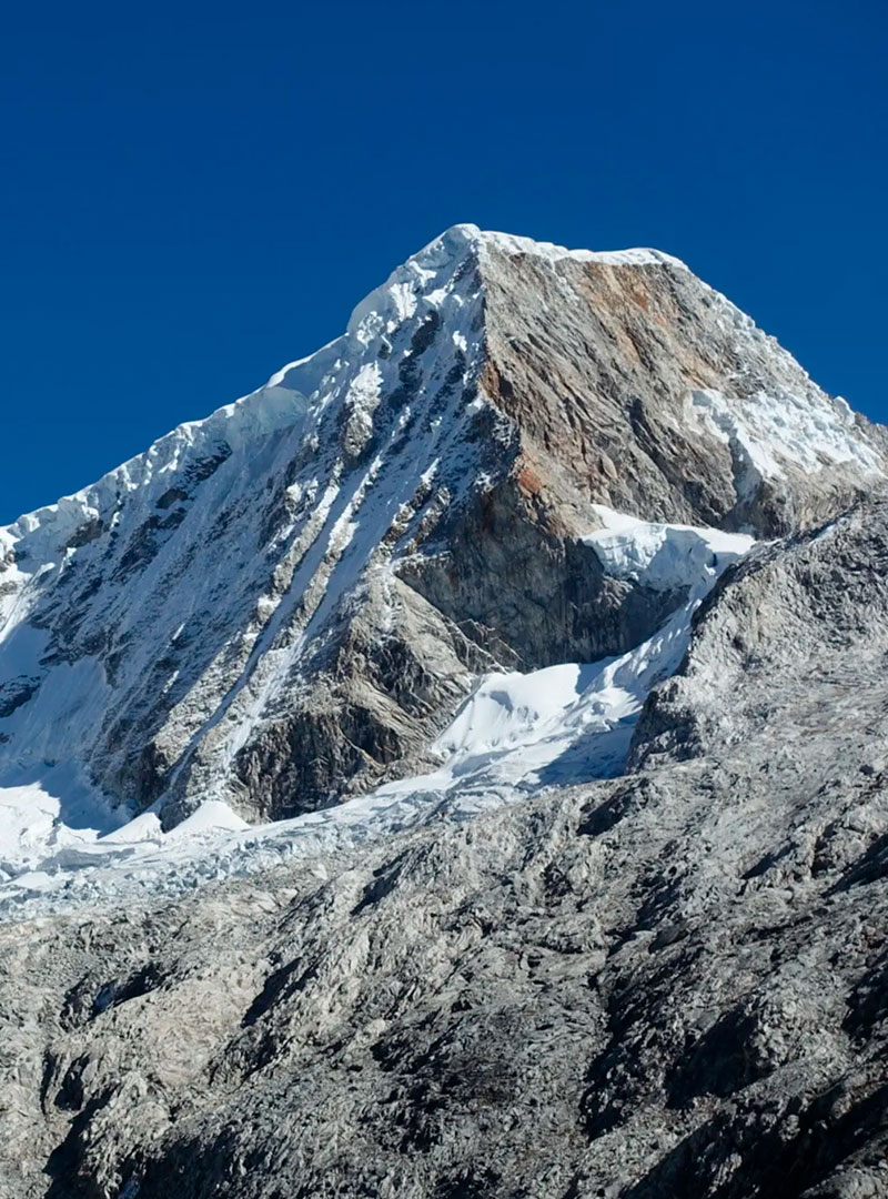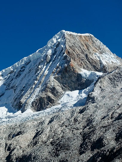 Despertamos por la madrugada para alistar los equipos y empezar el recorrido, un aproximado de 3.5 horas por un camino rocoso para llegar al glaciar. Aquí empezaremos con nuestro equipo de escalada para comenzar a subir a la cumbre. Iniciaremos la caminata en el glaciar con un aproximado de 4 hrs para poder llegar a la cumbre (5750m). Disfrutamos de las bonitas vistas de diferentes montañas como: Artesonraju, Alpamayo, Caraz, Huascarán, Chopicalqui, Yanapaccha, Chacraraju, Huandoy, laguna 69. Después de unos minutos volvemos a bajar al Campo Base (4500m) donde nos espera un almuerzo, bebidas para hidratarse y pasar la noche.