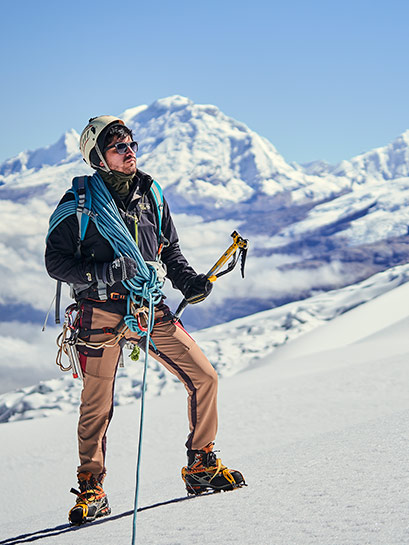 - Equipo técnico de montaña: Pantalón de nieve, botas de montaña, casco, harnes, piolet, guantes, frontal.